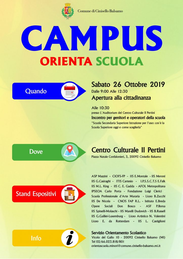 Con quello di Nova Milanese tenutosi sabato 5 ottobre 2019 è iniziata la stagione dei Campus di Orientamento “esterni” ai quali i docenti, i formatori e gli allievi delle Opere Sociali Don Bosco partecipano per incontrare i ragazzi e le famiglie che vogliono conoscerci da vicino!