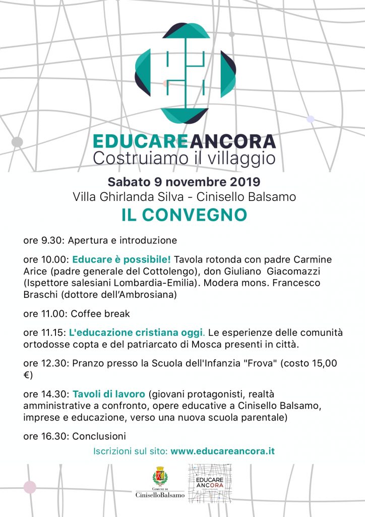 ore 10.00: Educare è possibile! Tavola rotonda con padre Carmine Arice (padre generale del Cottolengo), don Giuliano Giacomazzi (Ispettore salesiani Lombardia-Emilia). Modera mons. Francesco Braschi (dottore dell’Ambrosiana)