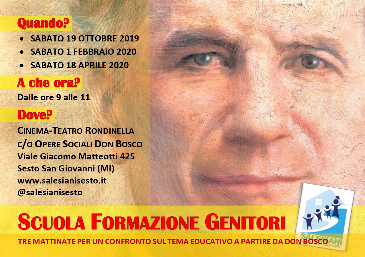 Sono aperte le iscrizioni per l’ultimo incontro della Scuola Formazione Genitori che si terrà sabato 18 aprile 2020 dalle ore 9 alle ore 11 presso il Cinema-Teatro Rondinella.