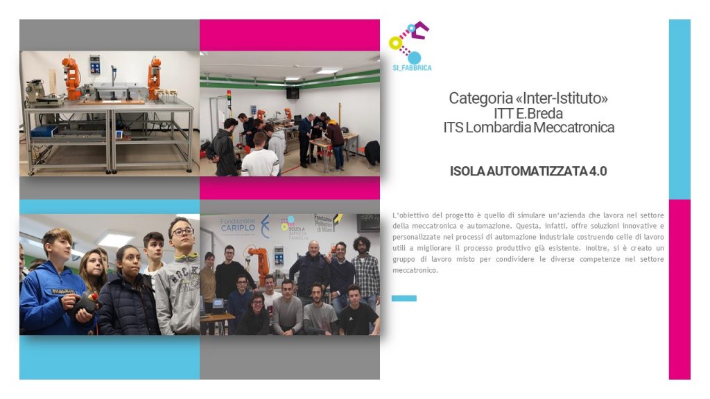 Un gruppo “inter-istituto” composto da allievi dell’Istituto Tecnico Tecnologico “Breda” e della Fondazione ITS Lombardia Meccatronica di Sesto San Giovanni hanno appena riportato una bella e importante affermazione con il 2° posto al Concorso SI_Fabbrica promosso da Fondazione Cariplo.