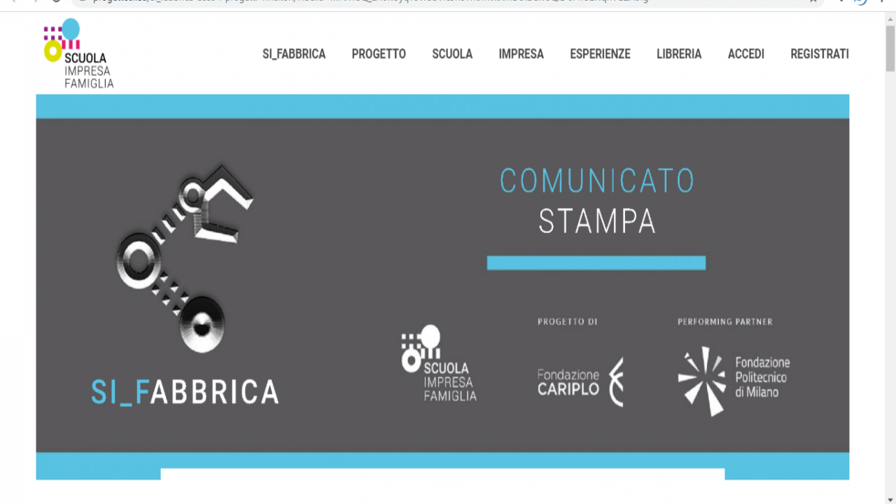 Egregio Dirigente Scolastico, desidero esprimere un ringraziamento per la partecipazione dell’Istituto da Lei diretto alla competizione SI_FABBRICA realizzata nell’ambito del “Progetto SI – Scuola Impresa Famiglia”.