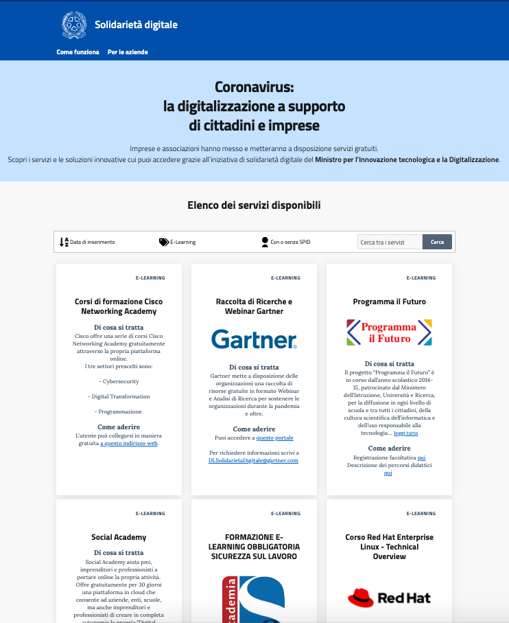 Il portale è raggiungibile all’indirizzo web: https://solidarietadigitale.agid.gov.it/
