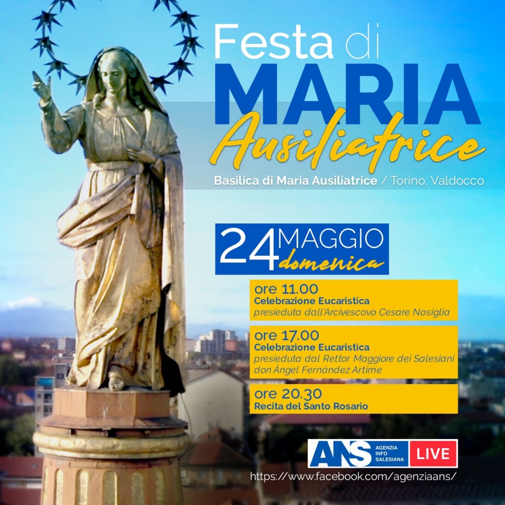Verrà poi indicato un impegno da vivere durante il giorno e chiuderemo con l’Atto di Affidamento speciale a Maria Ausiliatrice, rinnovando con il cuore di Don Bosco la nostra fiducia in Maria Santissima, in quest’ora di grande prova e sofferenza, ma anche carica di solidarietà, fede e speranza.