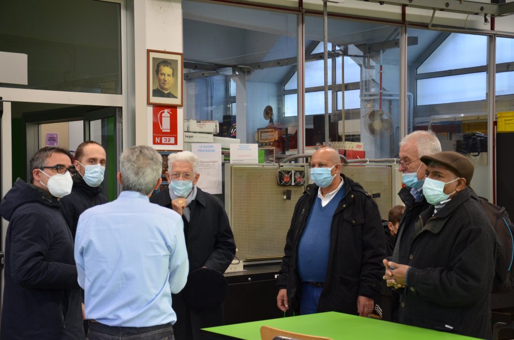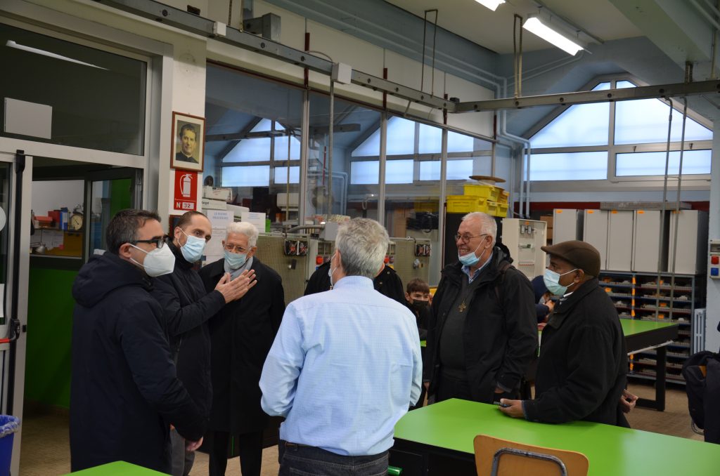 A Sesto San Giovanni il Cardinal Piat ha potuto incontrare il Direttore don Elio Cesari e il Direttore del CNOS-FAP locale Francesco Cristinelli. Assieme ai suoi accompagnatori ha salutato gli allievi del CFP che erano all’opera nei laboratori e ha dialogato con i formatori presenti. Per tutti ha avuto parole di plauso e di elogio.