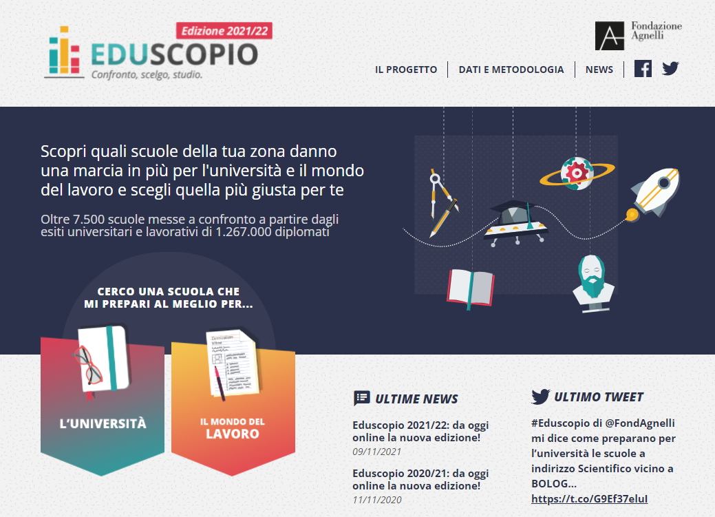 La “Fondazione Agnelli” ha recentemente pubblicato su Eduscopio.it i nuovi dati relativi alla qualità delle Scuole Superiori di tutta Italia in relazione alla preparazione dei loro diplomati per l’Università e all’inserimento di quest’ultimi nel mondo del lavoro. Per quanto riguarda le Opere Sociali Don Bosco: