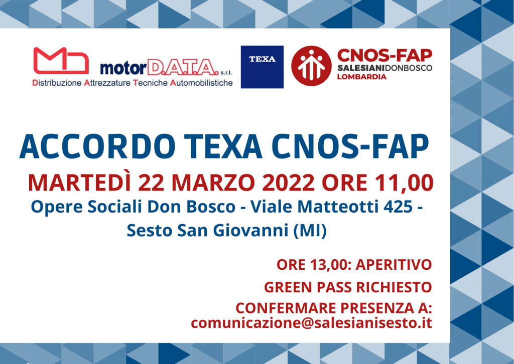 Il mondo del lavoro è in continua trasformazione e, specie in ambito automotive, cresce la richiesta di figure professionali altamente specializzate, formate sulle tecnologie che governano i veicoli attualmente in circolazione. Sulla base di questa premessa è nato l’accordo tra TEXA e la Fondazione CNOS-FAP Lombardia, sottoscritto martedì 22 marzo u.s. presso la sede delle Opere Sociali Don Bosco a Sesto San Giovanni (Milano), che ha dato vita alla 58a “TEXAEDU Academy” in Italia.