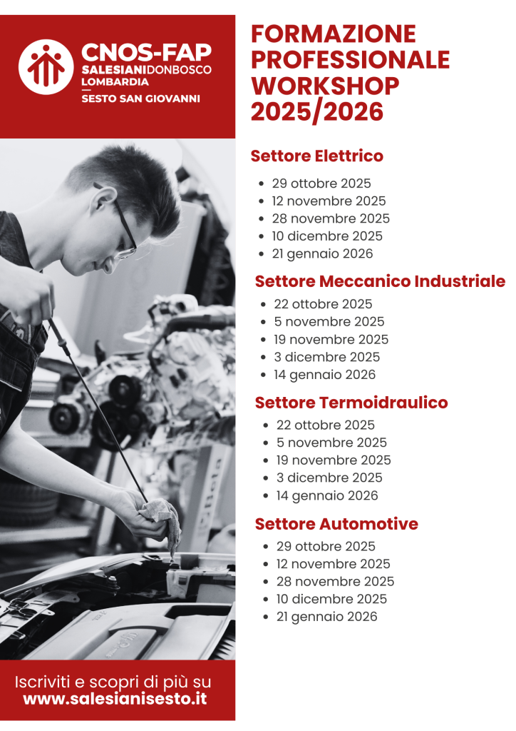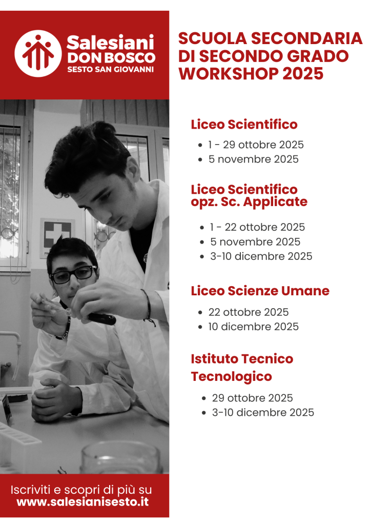 Per vivere un’esperienza laboratoriale diretta delle scuole dei SALESIANI di SESTO in cui iniziare a conoscere una o più materie dell’indirizzo di interesse, in maniera pratica, interagendo coi docenti, i formatori e gli allievi delle nostre scuole, per una scelta consapevole e informata della scuola superiore.